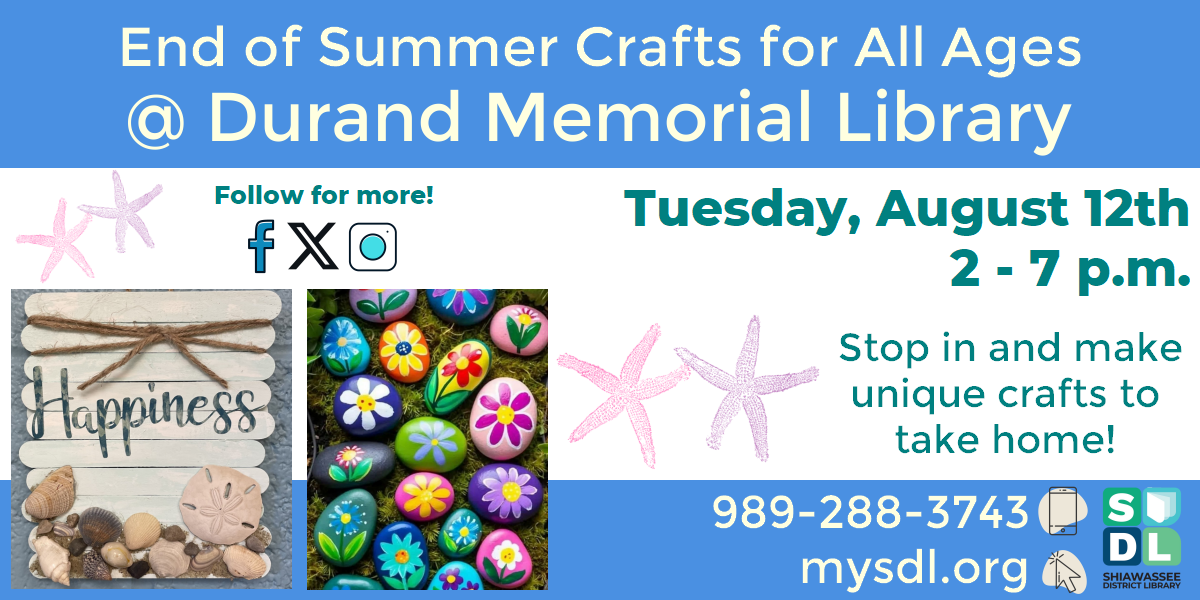 • Holiday Movie Night @ Durand Memorial Library. Friday, December 19th at 6 p.m. Kids and their families can visit the library and enjoy The Grinch along with crafts and snacks!