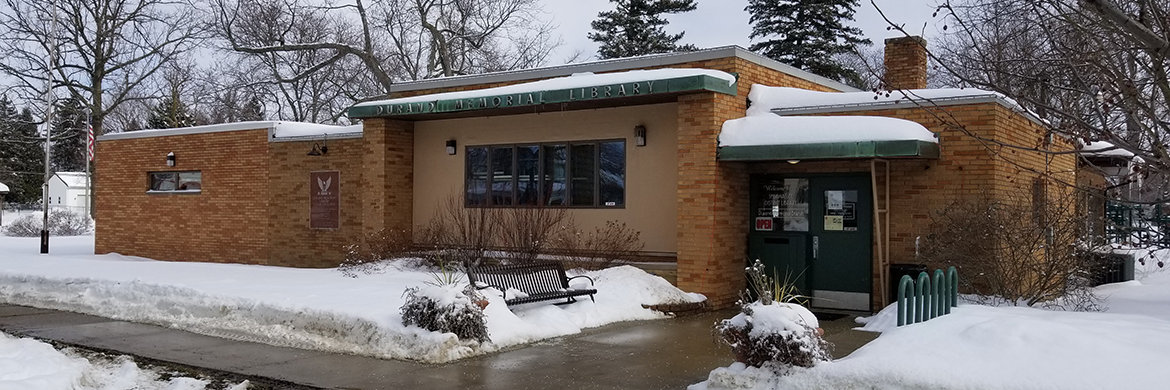 The library was established as a living memorial to area veterans who served in World War I, World War II, and the Korean War, and a plaque with their names is on display in the lobby. At the library’s groundbreaking in 1953, Durand Mayor Norman Sparling said “This beautiful building will be a continuous living memorial to our servicemen. The people of Durand will be proud of this structure and the part it will help play in our community.”