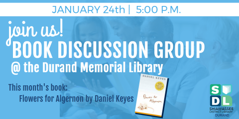 Book lovers are invited to join in an informal discussion of the classic novel "Flowers for Algernon".