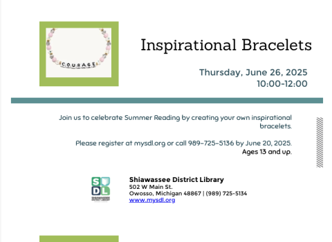 Join us to celebrate Summer Reading by creating your own inspirational bracelets that you can share, trade, or wear!