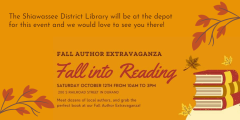 Join us at the beautiful Durand Union Station to meet some local authors and find some great books to buy. We'll have our button maker at the library table so stop by.