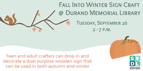 Adults and teens can drop in to make and take home a two sided sign for fall and winter decorating.