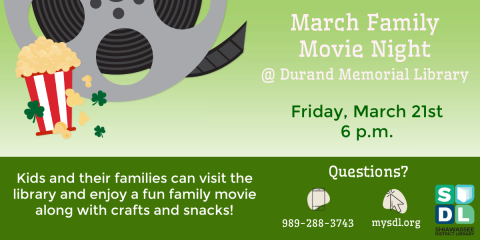 Due to licensing restrictions, the name of the movie cannot be released on social media. Anyone can call the library for the movie title at 989-288-3743.