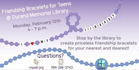 Teens are invited to make some fun bracelets at our drop in craft program.