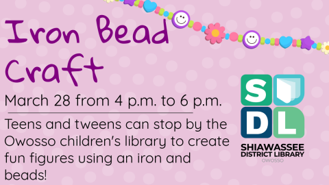 Teens and tweens can stop by the Owosso children's library to create fun figures using an iron and beads!