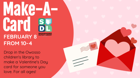 Drop in the Owosso children's library to make a Valentine's Day card for someone you love. For all ages!