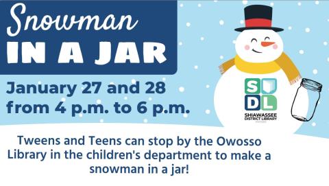 Teens and tweens can drop in to create a tiny snowman in a jar to take home.