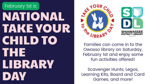 Families can come in to the Owosso library on Saturday, February 1st and enjoy some fun activities offered!