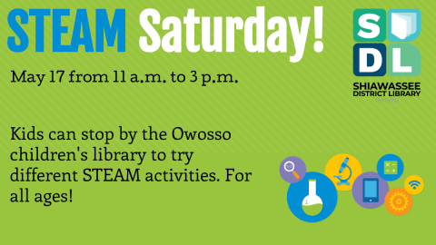 Kids can stop by the Owosso children's library to try different STEAM activities. For all ages!