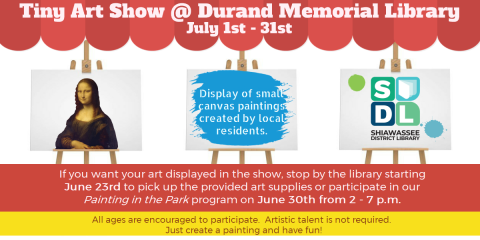 Local artists are invited to enter their own miniature painting for our Tiny Art Show which will be on exhibit throughout July.