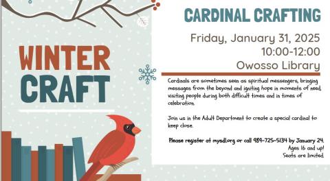 Join us in the Adult Department to create a special cardinal to keep close.